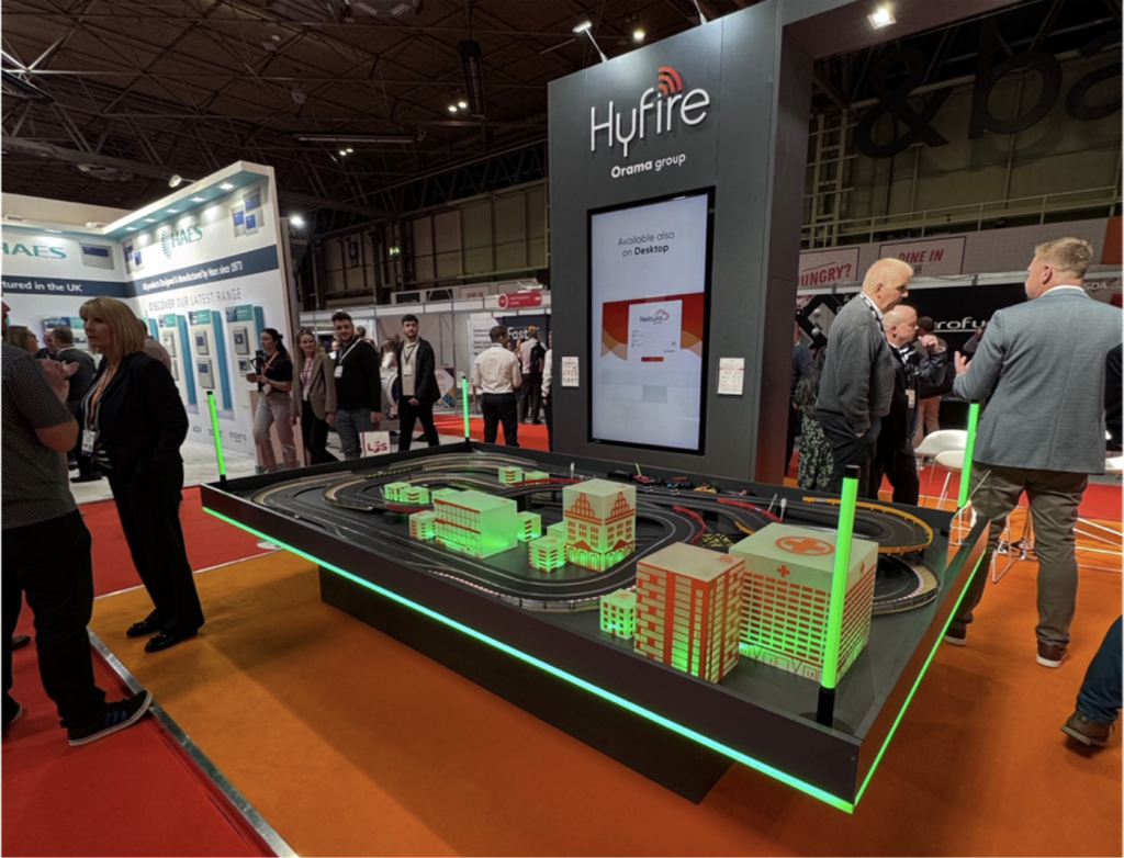 You’ve seen it all before: the branded beanbag toss, the popcorn machine, the putting green, the Scalextric – some of the devices used to grab attention look great. The Hyfire stand at the FSE event especially looks very striking,