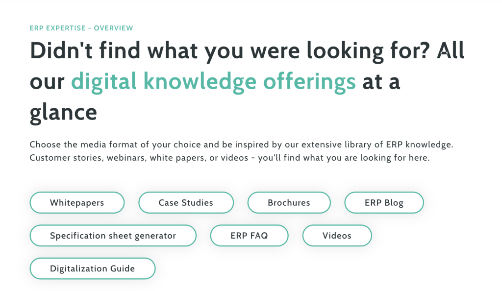 abas ERP places the prospect at the centre of its online experience. As with redcentric, the positioning uses the words “you” and “your” rather than “our”, ‘we’ and “us’, which sets a customer-centric tone.