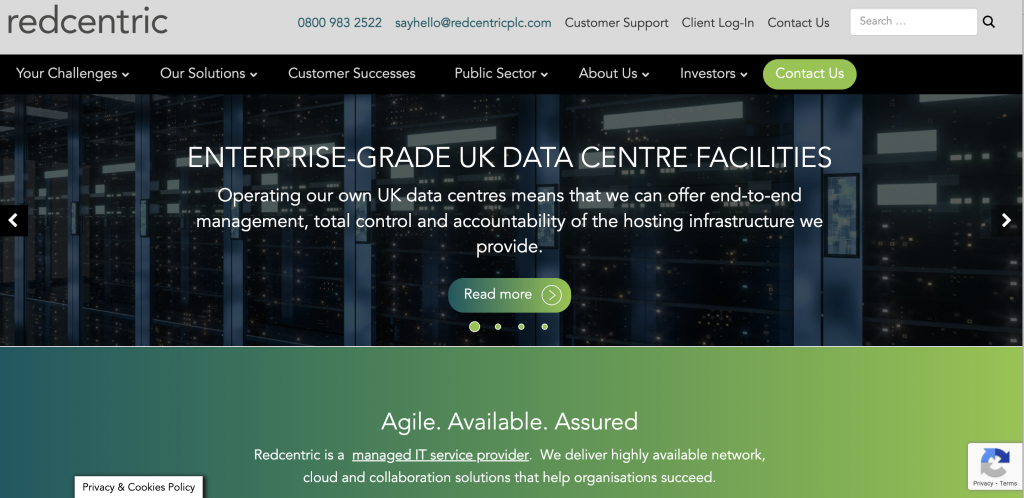 The first thing that hit us when we arrived on the redcentric website is “Your Challenges” in the far left of the navigation bar. As we mostly read left to right, that is arguably the first thing visitors will see, and it immediately invites visitors to click and see if RedCentric can help with the challenges they have.
